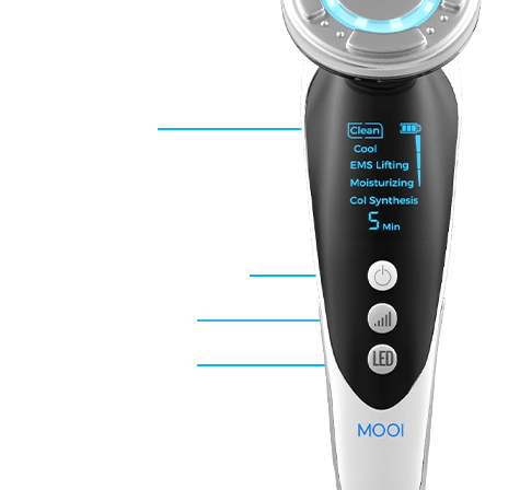 MOOI, cildinizdeki kolajeni harekete geçirmek, gerdirmek ve cildinizi istenmeyen sivilce, akne vb. oluşumlardan kurtarmak için ultrasonik titreşimler ile kırmızı ve mavi led ışık teknolojisini birlikte kullanır.