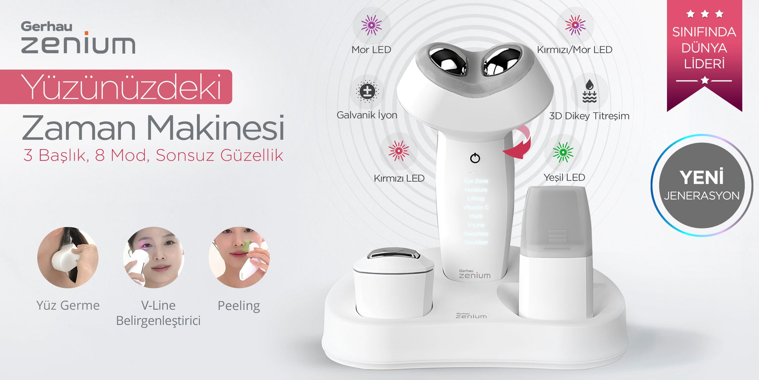 Gerhau Zenium, yeni nesil ultrasonik teknoloji, galvanik akım, 3D dikey titreşim ve LED ışık terapisi ile donatılmış, profesyonel seviyede cilt bakımı sunan benzersiz bir cihazdır.